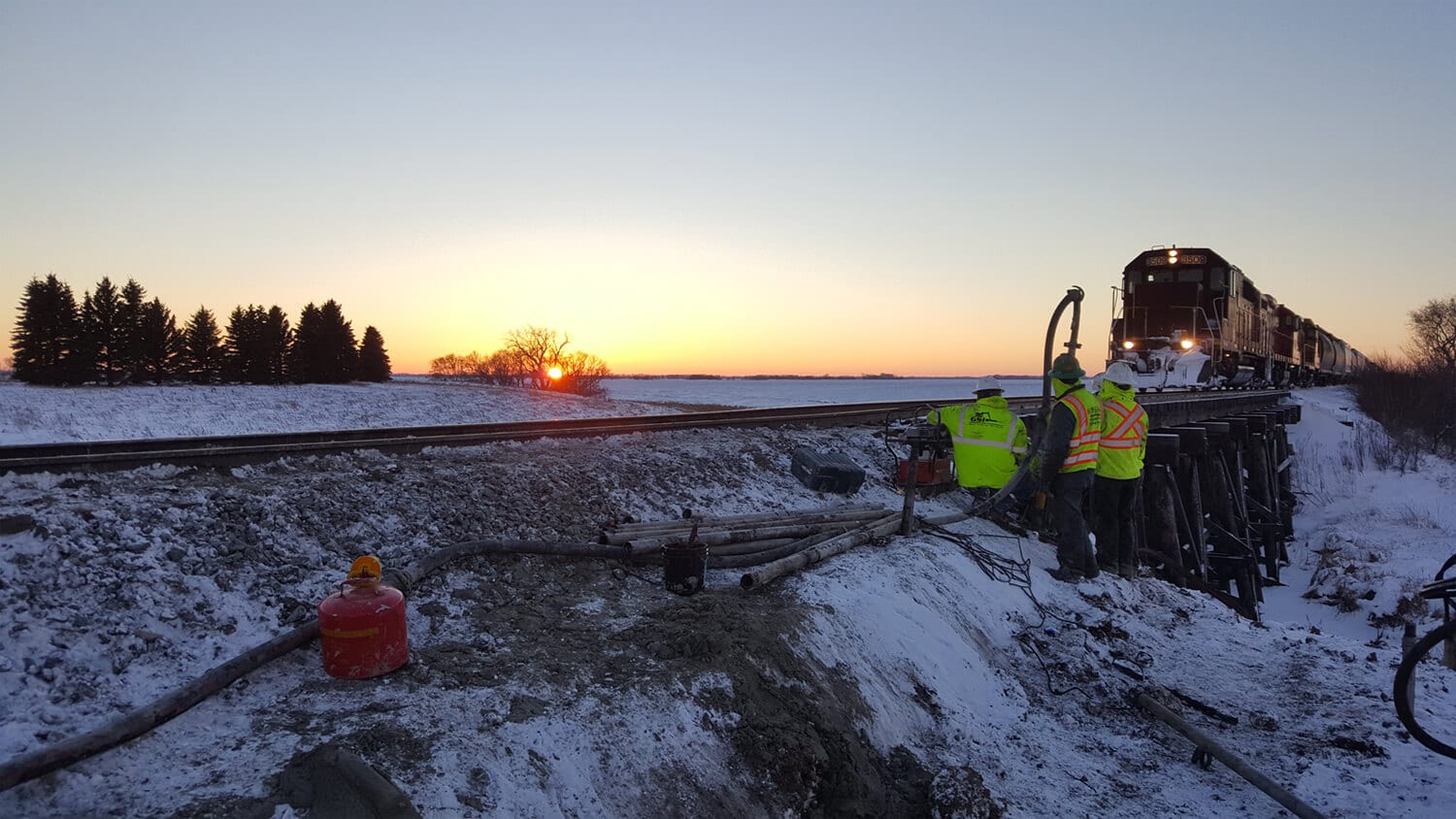 RailJET® is a field-proven subgrade stabilization solution developed specifically for railway applications. The process uses horizontal jet grouting to mix in-place soils with cementitious materials, forming rigid inclusions that improve bearing capacity and shear resistance beneath the track. This approach allows rail operators to address underlying ground issues without extended outages.