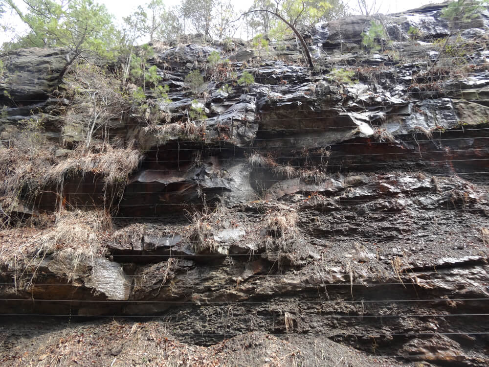 A standard solution is to drape steel mesh over the slope to retard the energy and keep falling rocks under the mesh. This technique prevents rocks from falling onto roads, railway tracks, and other transport infrastructure.