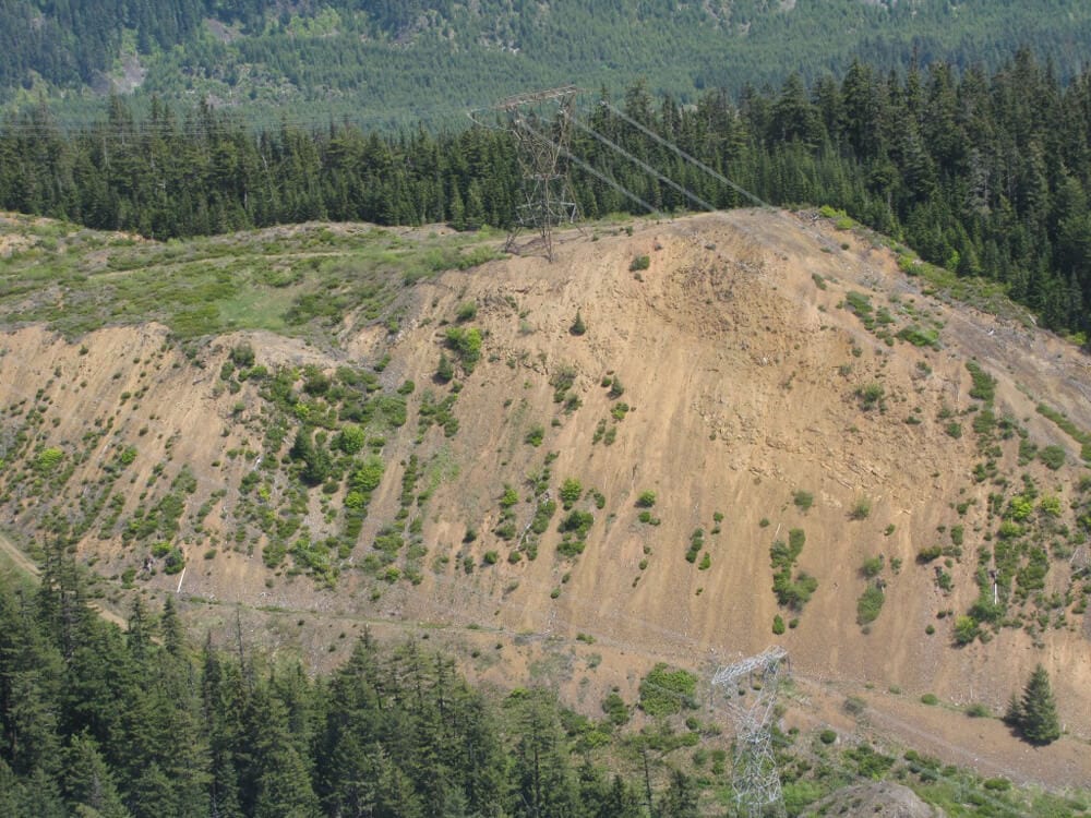 The foundation of a high voltage tower situated at the crest of a steep, high ridge of weak rock in Southern British Columbia was at risk of being undermined and needed slope stabilization. Through the decades since its construction, the rise had eroded several meters. The weak nature of its sedimentary rock made it even more erodible than soil. Relentless frost, wind, and weather had broken and raveled several meters of the slope’s crest. This material loss exposed the upper portion of the foundation grillage and removed the required soil mass needed for uplift resistance. Clearly, the transmission tower’s owner needed to act quickly by either moving the tower back, protecting the crest, and/or underpinning the foundation.