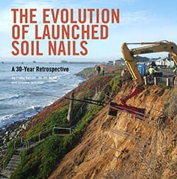 Launched soil nails are a unique remedial technology in the geotechnical construction toolbox. These 20-ft-GEOSTRATA-Mag-Oct2016 long, 1.5-in.-diameter nails are installed in a single shot using a compressed air “cannon” at velocities of up to 250 miles/hour, and at rates approaching 250 nails/day. The nails reinforce an unstable or potentially unstable soil mass by transferring the nail’s tensile and shear capacity into the sliding soil. However, at least as interesting as the tool itself, is the story behind the development of launched soil nail technology over the past 30 years.