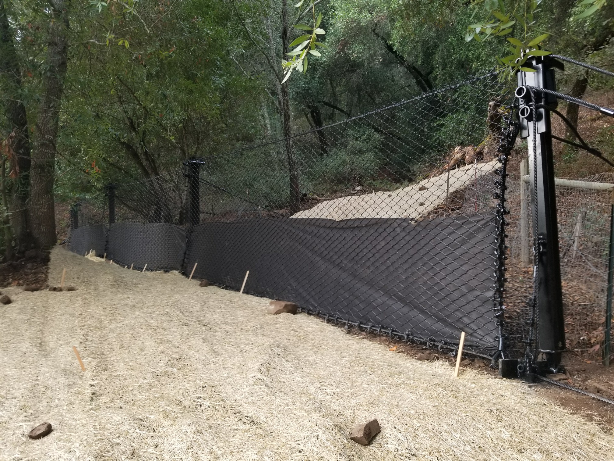 • Support cables and posts: Transfer loads safely into the slope or foundation while maintaining the fence’s structural shape.