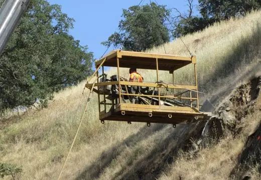 GeoStabilization International® crews use mechanical methods and tools to scale loose rocks, including hand tools, pry bars, and inflatable airbags. Some cases require non-explosive demolition agents to remove boulders and other structures that can potentially break loose and fall.