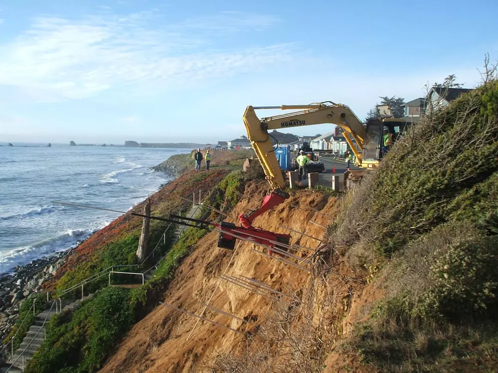 This solution was the least expensive of all options considered and remains intact after later being hit by two Pacific tsunamis. Contact GeoStabilization International® at 855-579-0536 to learn how our teams are mitigating landslides and providing residential slope stabilization, slope monitoring, slope protection, and landslide prevention services.