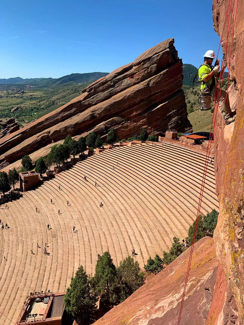 GeoStabilization International®partners with the City and County of Denver to ensure visitor safety at Red Rocks Amphitheatre by inventorying rockfall hazards and performing regular rockfall mitigation. Once threats are identified, GeoStabilization uses its expertise to enhance public safety at the historic Red Rocks location by mitigating the risks. To prevent rockfall incidents, GeoStabilization staff members: