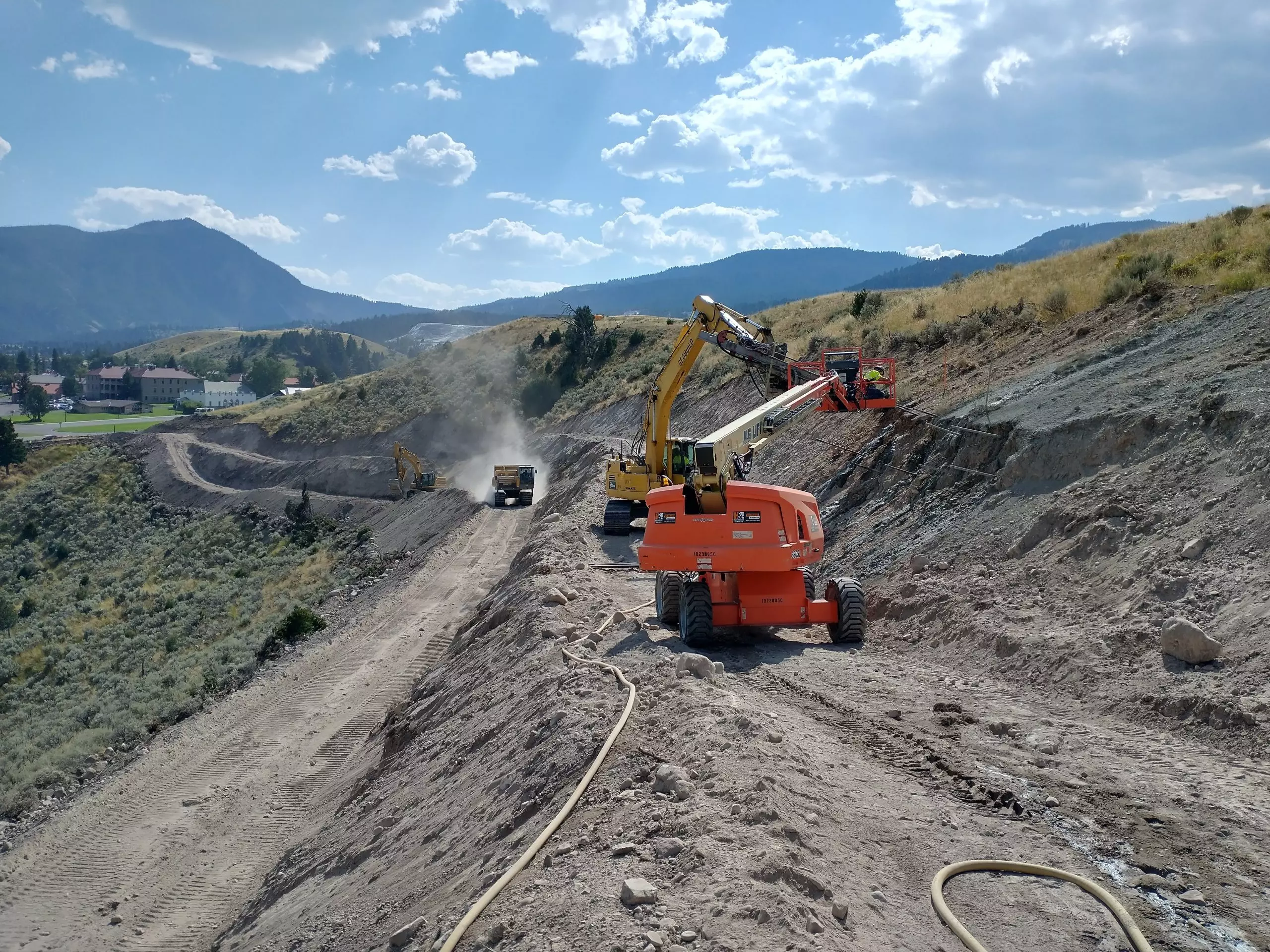Self-drilling soil nails are uniquely suited for collapsing soil or actively moving landslides. This nail type can be used for rock or soil masses. Self-drilling nails have a high installation rate and high pullout capacity.